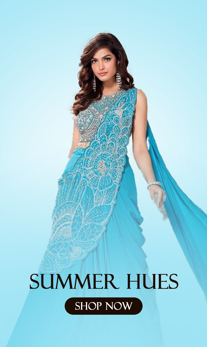 Turquoise Glam Embellished Pre-Stitched Saree Set