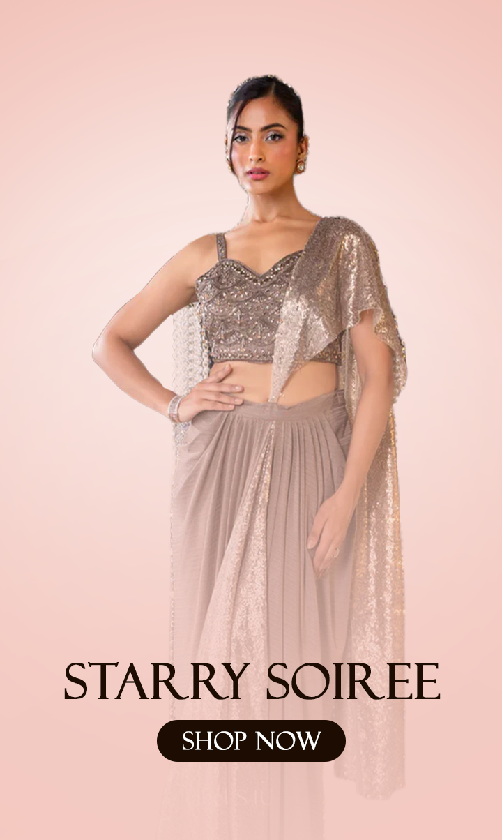 Midnight Bloom Embellished Jacket & Draped Skirt Set